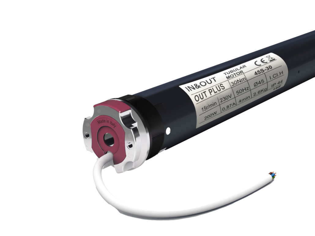 OUT PLUS è il motore tubolare con ricevente integrata con regolazione di funzionamento tramite FINE CORSA ELETTRONICO.