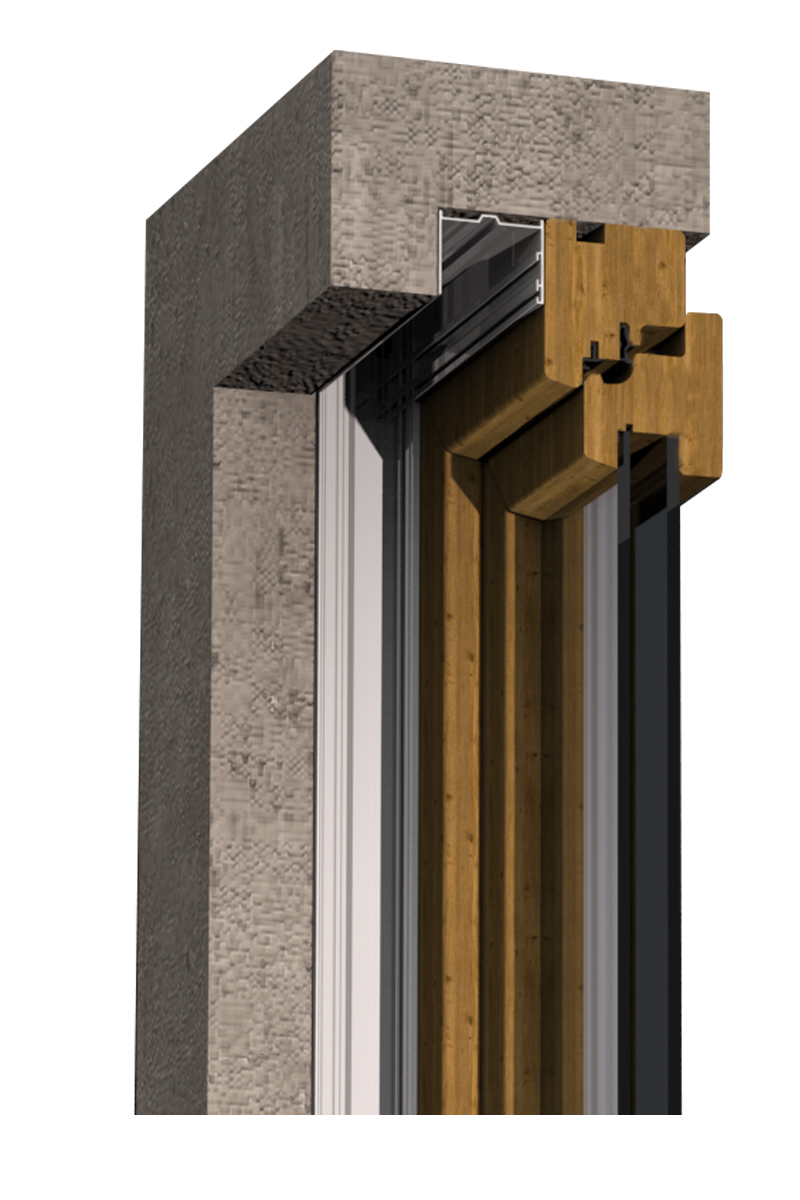 RECESSED - B 50 ist ein Einbauprofil, das mit den Systemen kombiniert werden kann:Plissè Zero, Libera, Flexa, Jolly, Unika 45, Perlegno 45, 0.18 mit Adapter 45×0.18. Es ermöglicht die Vorbereitung des Rahmens für die spätere Montage des Insektenschutzes.