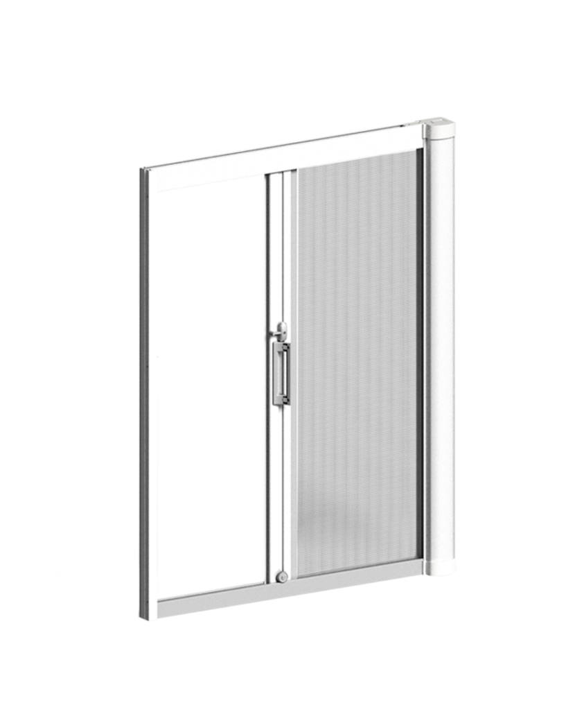 Νέα ιδέα είναι μια περιτυλίγματος κουνουπιέρα με εξωτερική πλευρά-κύλιση για την πόρτα με μαγνητικό κλείσιμο και την άνοιξη κίνημα.