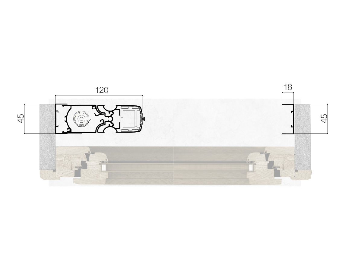 la presa ergonomica lungo tutto il profilo della barra maniglia, rende comodo e facile l’azionamento sia dall’interno che dall’esterno. L’apertura e chiusura dell’anta, pur essendo dotata di molla, risulta molto controllata, senza causare avvolgimenti improvvisi e veloci. Questa caratteristica, unita alla guida a terra molto bassa da 5mm, rende il prodotto ideale per i vani di frequente passaggio.Optionnel: