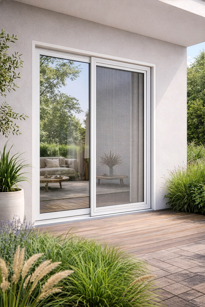 Sly è una zanzariera scorrevole due ante compatta e facile da installare, ideale per finestre e grandi infissi scorrevoli. Il profilo minimale garantisce robustezza, presa ergonomica e massima luminosità. Di serie viene fornita senza traverso fino ad una larghezza massima di 3000 mm ed un’altezza di 2500 mm.