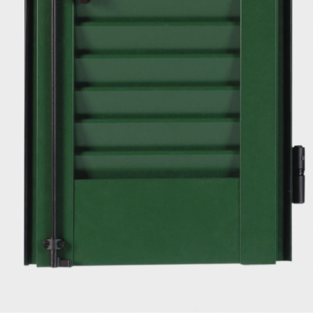 Realizzabile nelle versioni finestra e portafinestra incardinata direttamente a muro o con telaio di cassa perimetrale. Selle reggilamella in nylon disponibili di serie nei colori: ral 8017, ral 6005, ral 9010 e nero.