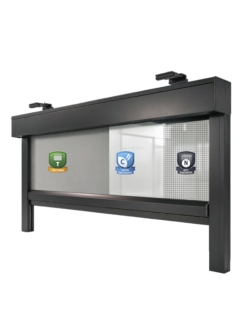 Zanzariera/oscurante/filtrante avvolgibile verticale per grandi luci, movimento a motore.